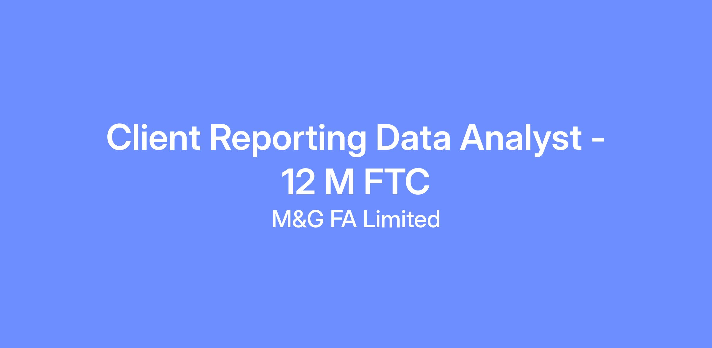 Client Reporting Analyst (12 month FTC Maternity cover) - The Role:
