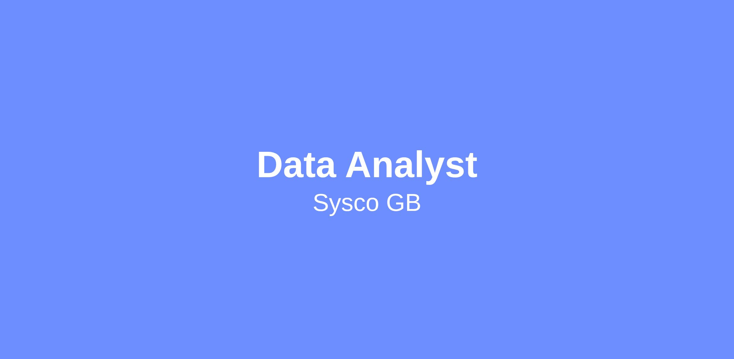 Sysco UK are currently recruiting for a Data Analyst to join the team in Covent Garden, London on a Full Time Permanent basis.