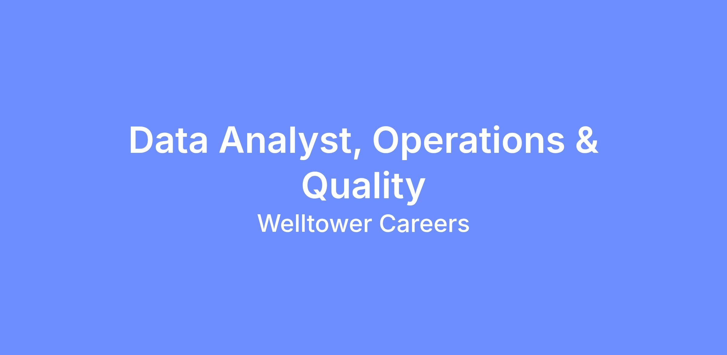 This role sits within the Operations & Quality Team at Welltower UK to ensure quality & risk data is effectively processed, analyzed and reported on.