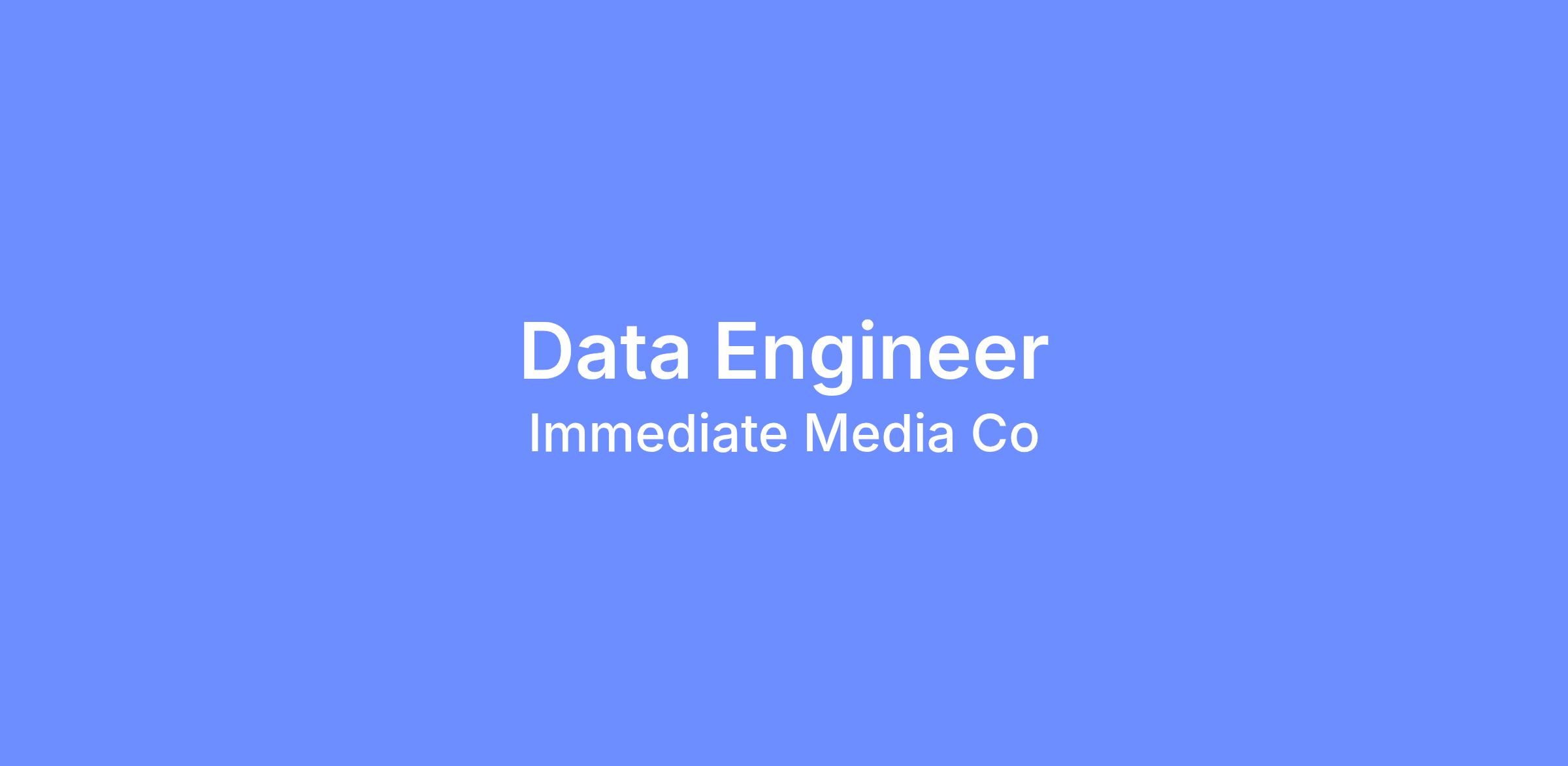 The Data Engineering Team is a highly skilled and effective team, that is in high demand within the business. The team works within the Product & Technology department at Immediate Media to deliver multi-department projects and service the data requirements of the business.Â