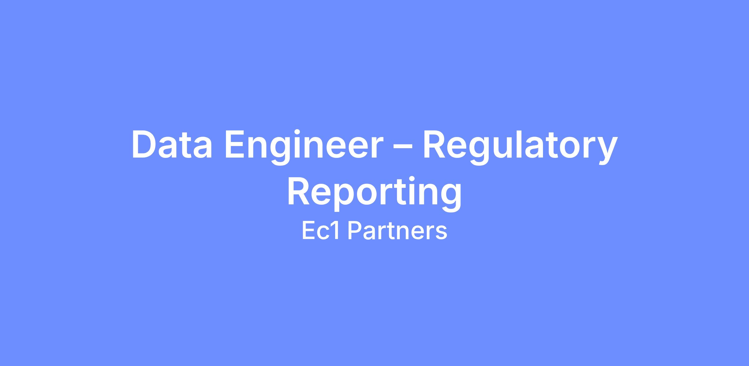 This role focuses on building and maintaining data pipelines that support regulatory reporting and compliance processes. You’ll ensure accuracy, traceability, and reliability of regulatory datasets within a controlled environment.
