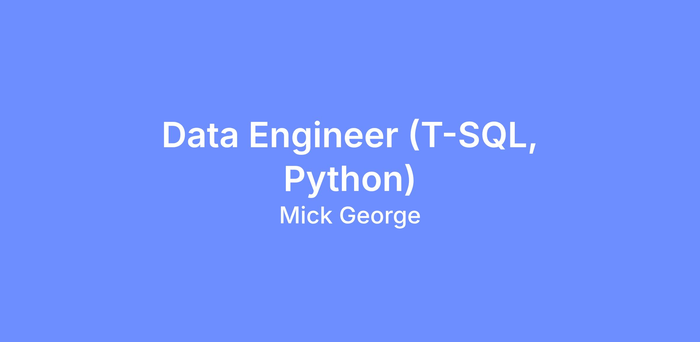 Here at the Mick George Group, we are currently recruiting a Data Engineer (T-SQL, Python) to join the Technology department.
