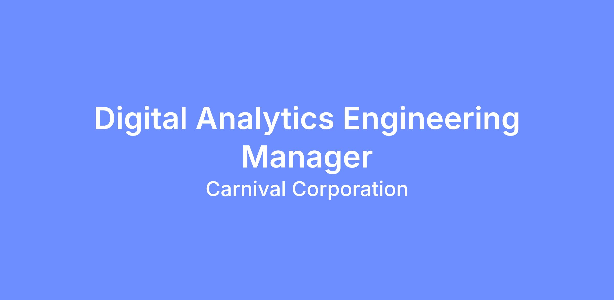 DescriptionIn our pursuit of excellence within our technology department here at Carnival UK, we're seeking individuals who bring a wealth of technical knowledge and expertise to our newly created Digital Analytics Engineering Manager role.Â