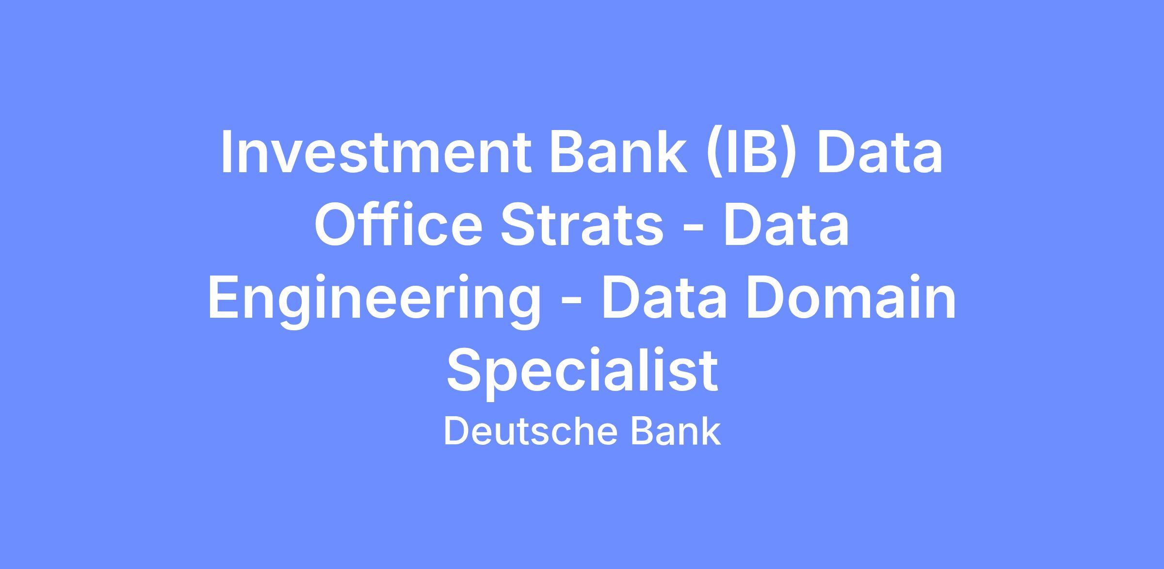Job Title Investment Bank (IB) Data Office Strats - Data Engineering - Data Domain Specialist