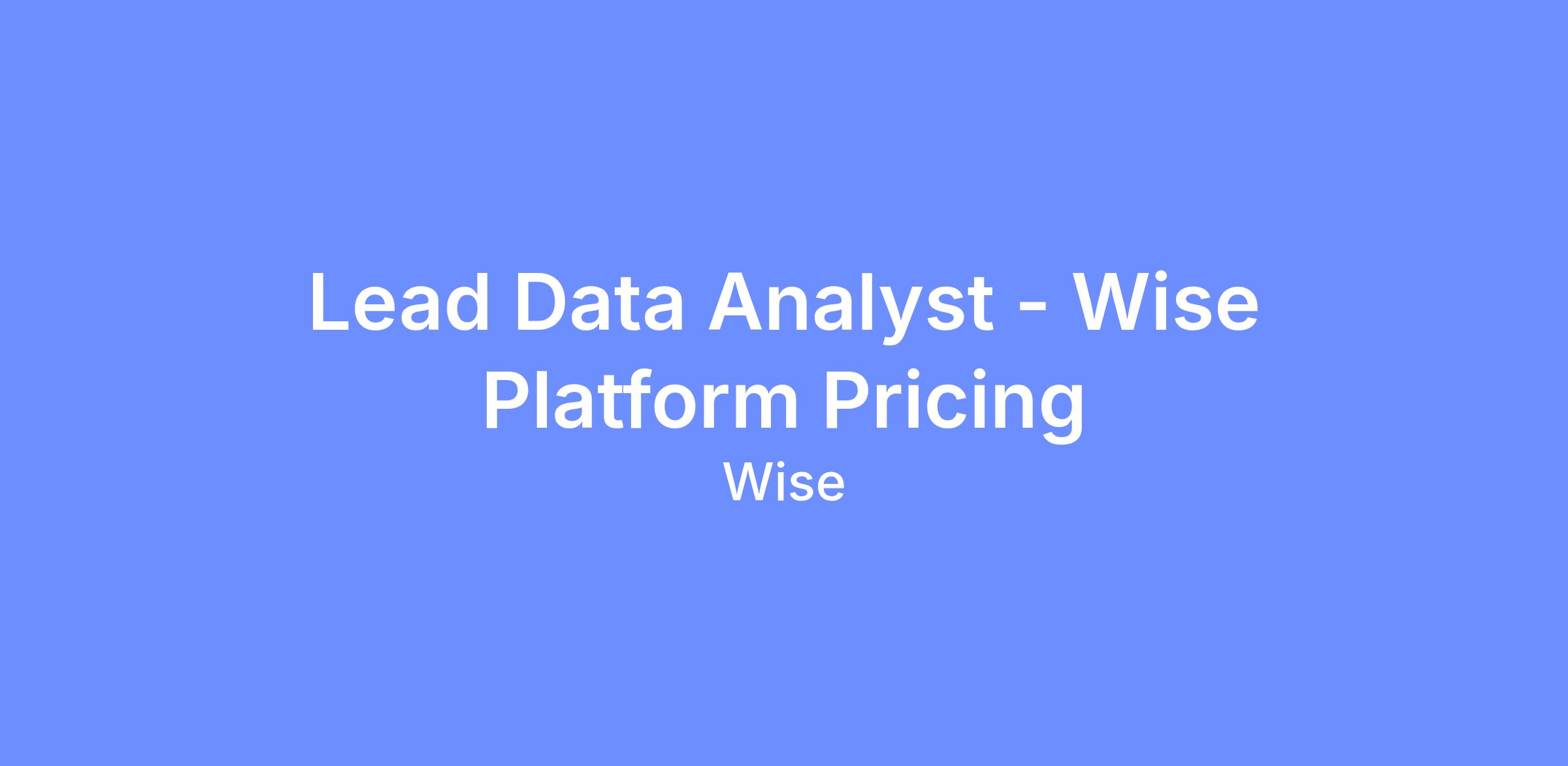 We are looking for a Lead Data Analyst to join the Wise Platform Pricing Analytics team at Wise.