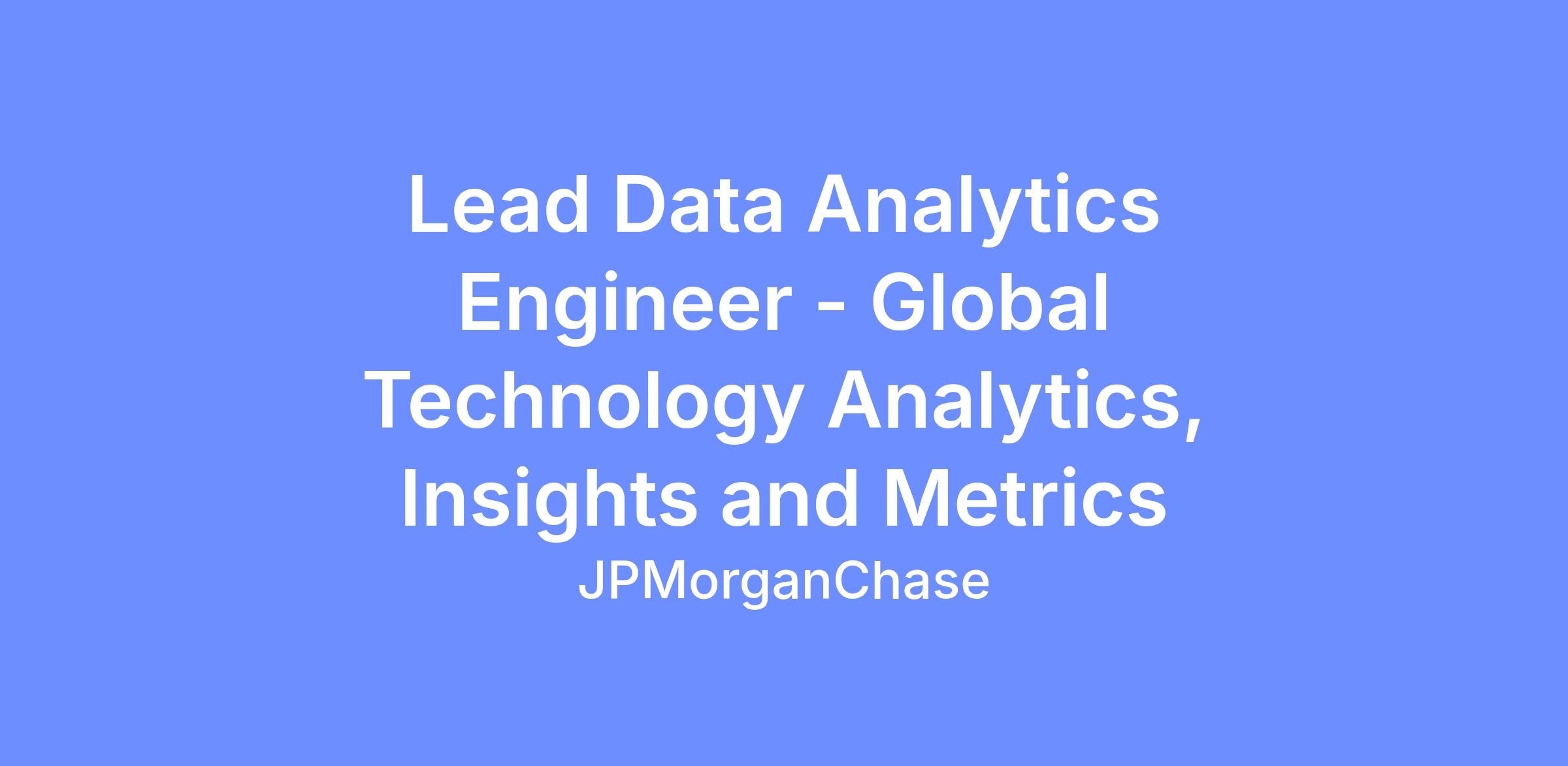 As a Lead Data Analytics Engineer at JPMorganChase within the Global Technology - Analytics, Insights and Measurements (GT AIM) team, you will deliver trusted, decision-grade insight across GT through rigorous statistical analysis and domain-informed interpretation. You will be entrusted in delivering market-leading technology products in a secure, stable, and scalable way. As a core technical contributor, you are responsible for conducting critical technology solutions across multiple technical areas within various business functions in support of the firm’s business objectives.