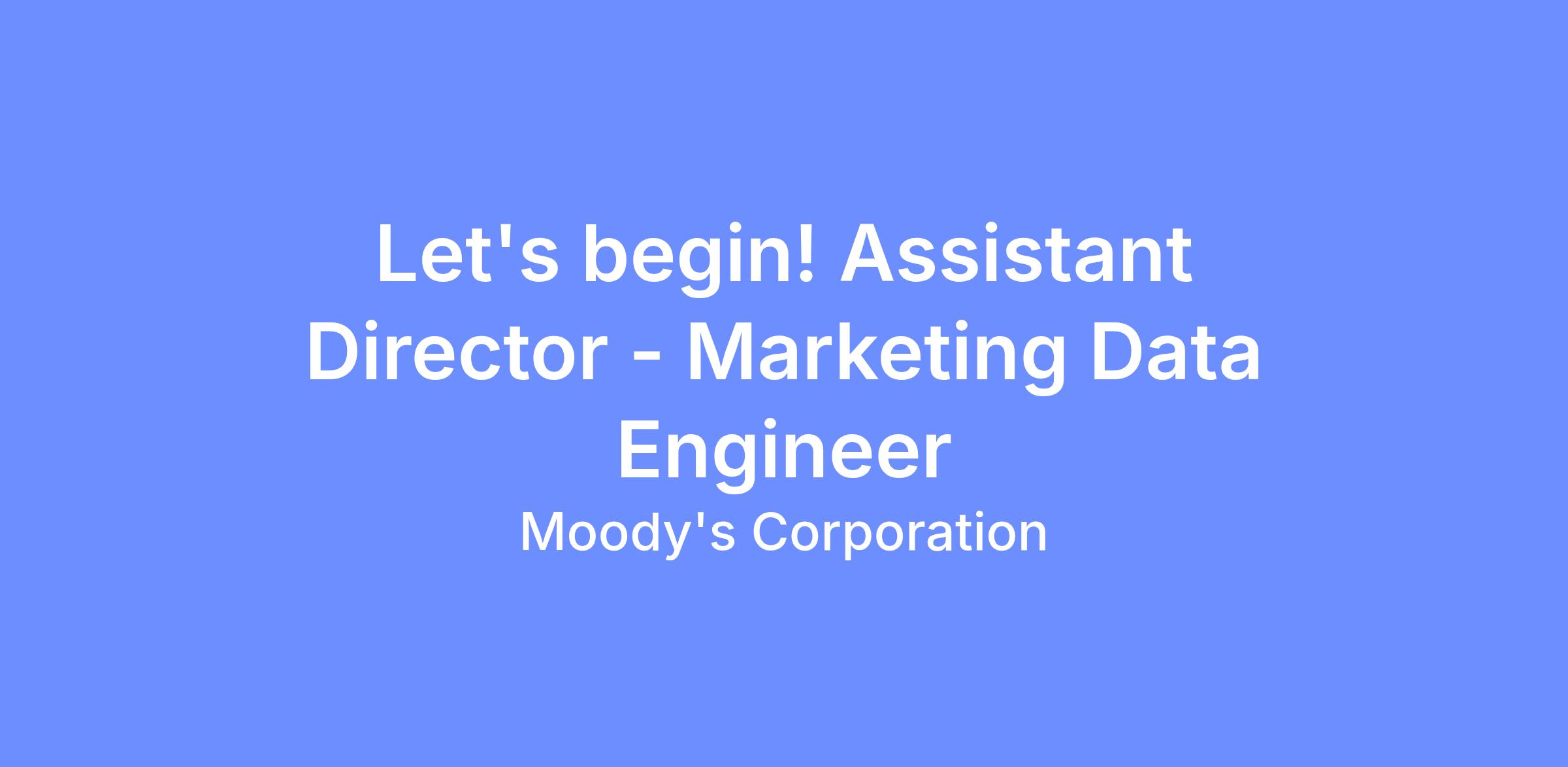 Candidates for Moody's Corporation may be asked to disclose securities holdings pursuant to Moody’s Policy for Securities Trading and the requirements of the position. Employment is contingent upon compliance with the Policy, including remediation of positions in those holdings as necessary.
