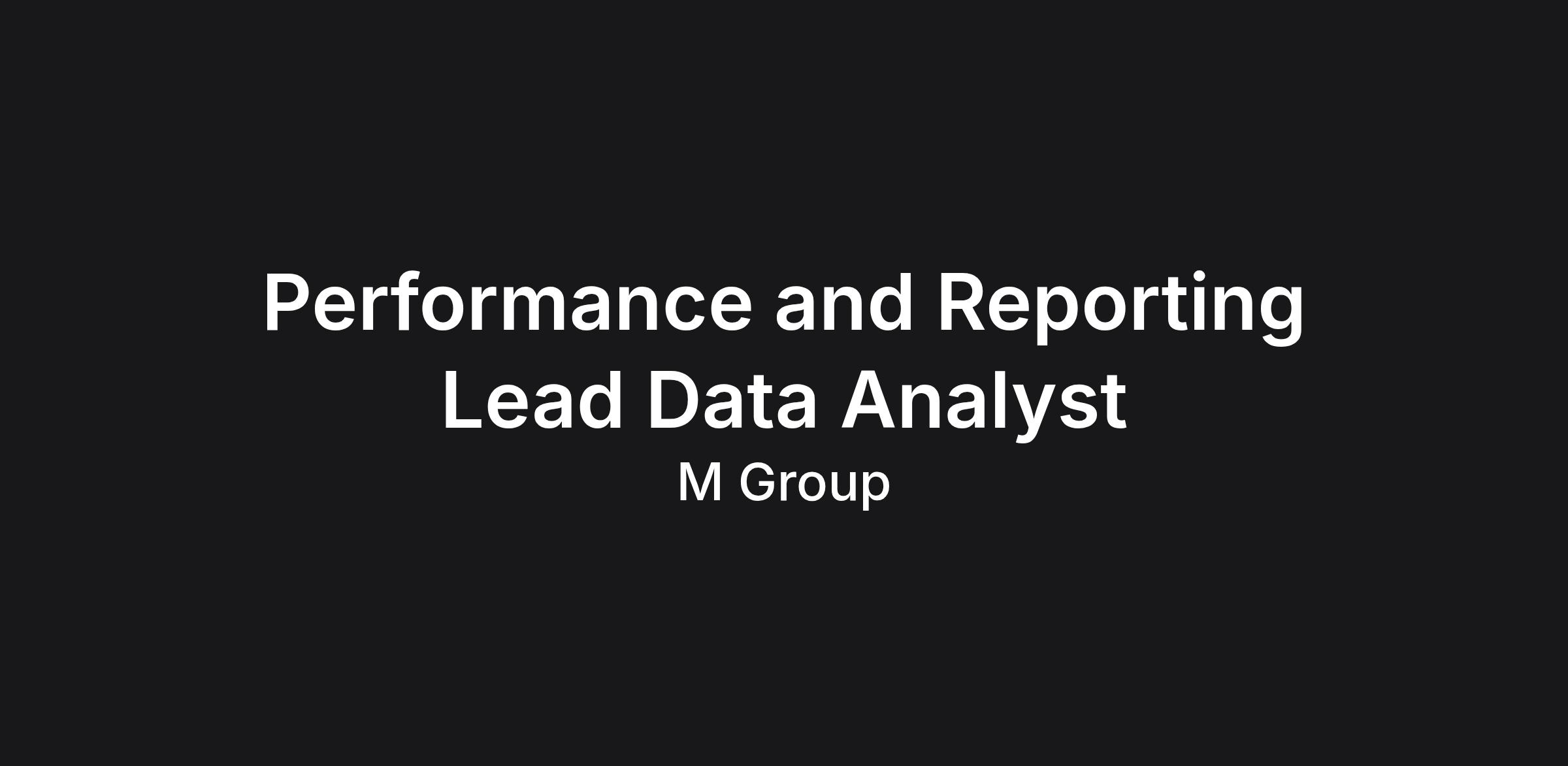Performance and Reporting Lead Data Analyst