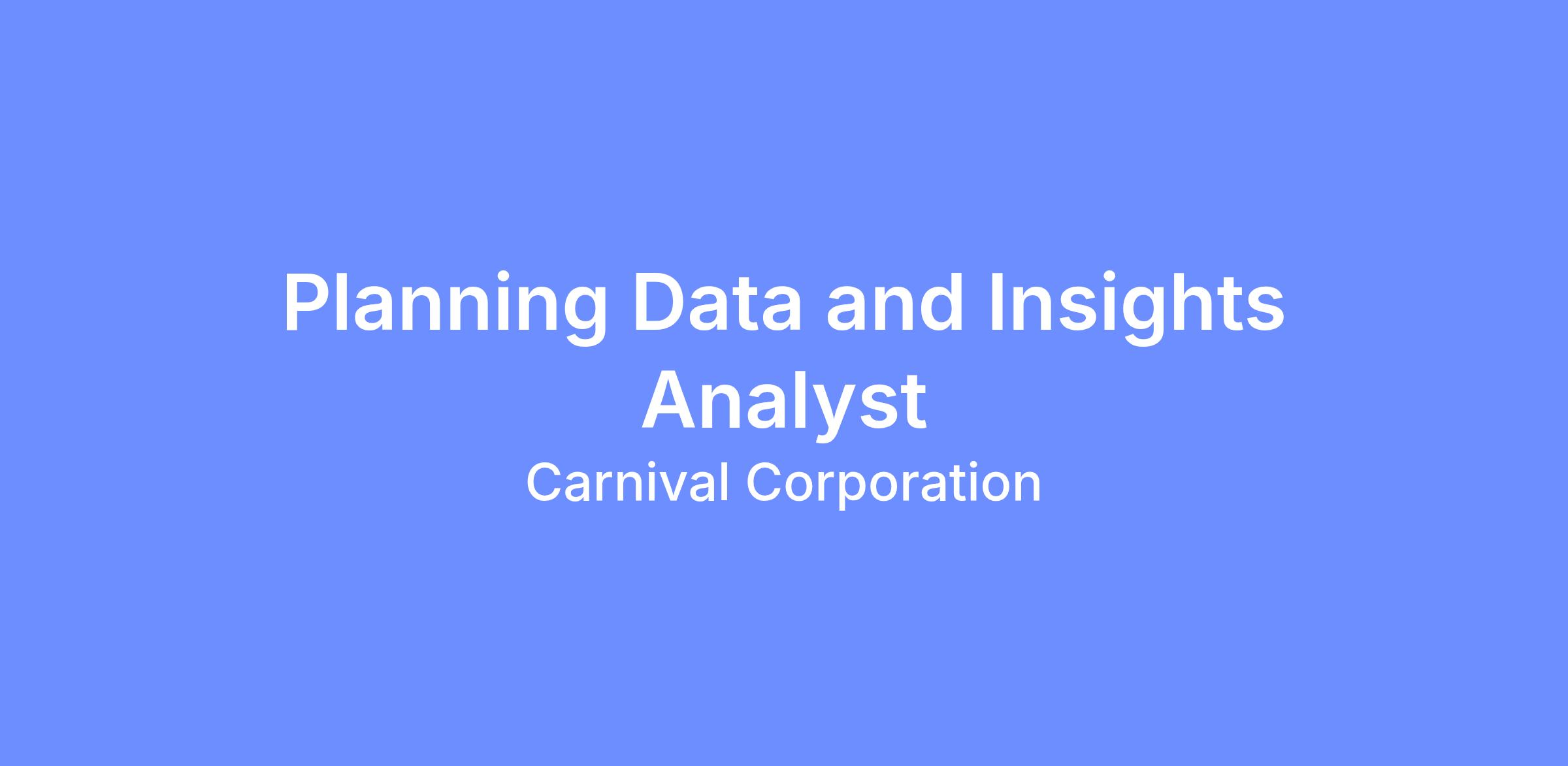 Weβre seeking a dynamic Planning Data and Insights Analyst (Planning Analyst) to join our PMO team. This role will be based in Carnival House in Southampton, on a permanent basis.