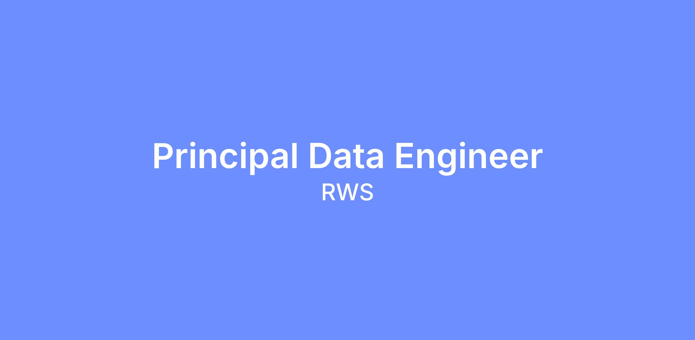 The Principal Data Engineer will be a foundational technical leader and architect, shaping how we build, scale, and evolve our data infrastructure to unlock insights and drive business value across RWS. This isn't just about writing code, you'll multiply your impact by designing systems that enable teams across the organization to make data-driven decisions, establishing architectural patterns that scale with our growth, and mentoring engineers to raise the capabilities of our entire data organization.Â