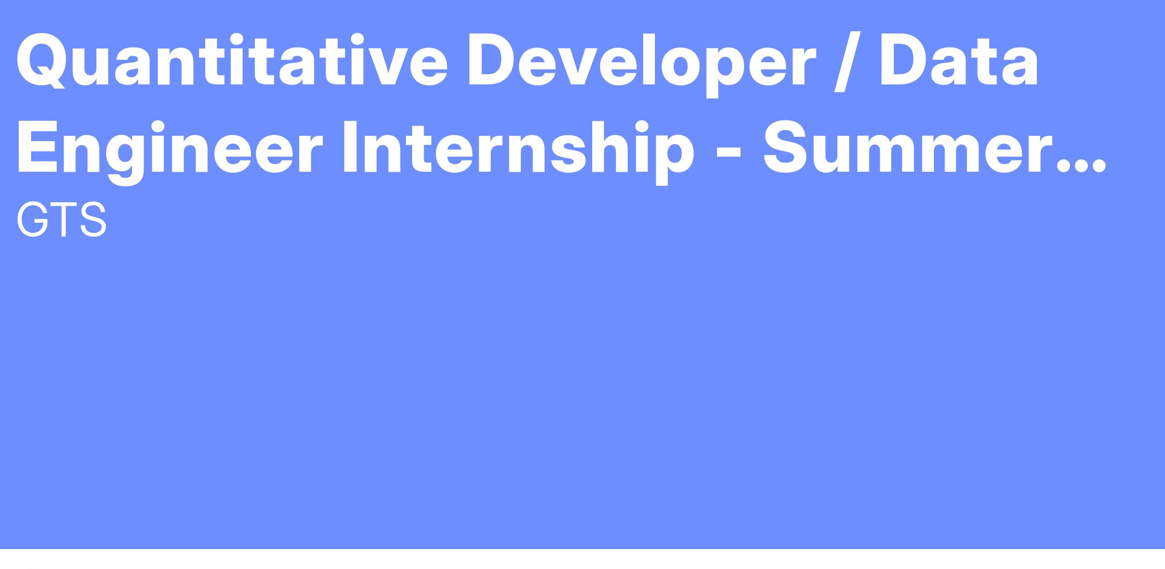 The Index Arbitrage group at GTS is an ETF market maker quoting across 12 exchanges. We are a technology driven team looking for talented quantitative developer interns and data engineering interns who have broad interests in trading, technology, and data. You will have the opportunity to work on various aspects of our business including data pipeline, Β finding a high-volume data-processing solution for data engineering and alpha generation.