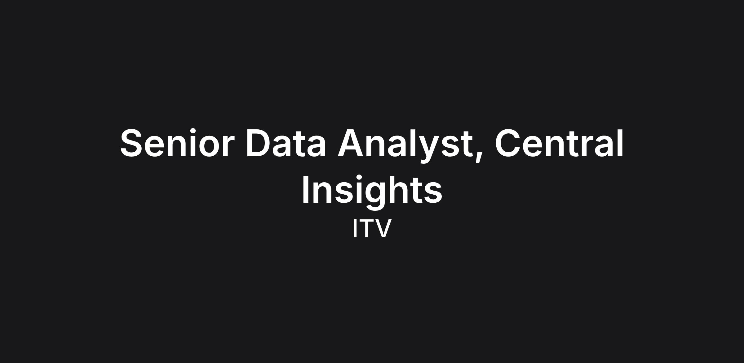 We are seeking a Senior Data Analyst to join the ITV Insight Group’s analytics function. Embedded across domain-aligned insights teams within the department, our analysts play a crucial role in shaping the business’s understanding of the UK television market, evolving viewer behaviours and future opportunities in an exciting, highly competitive and increasingly complex media landscape.    Â
