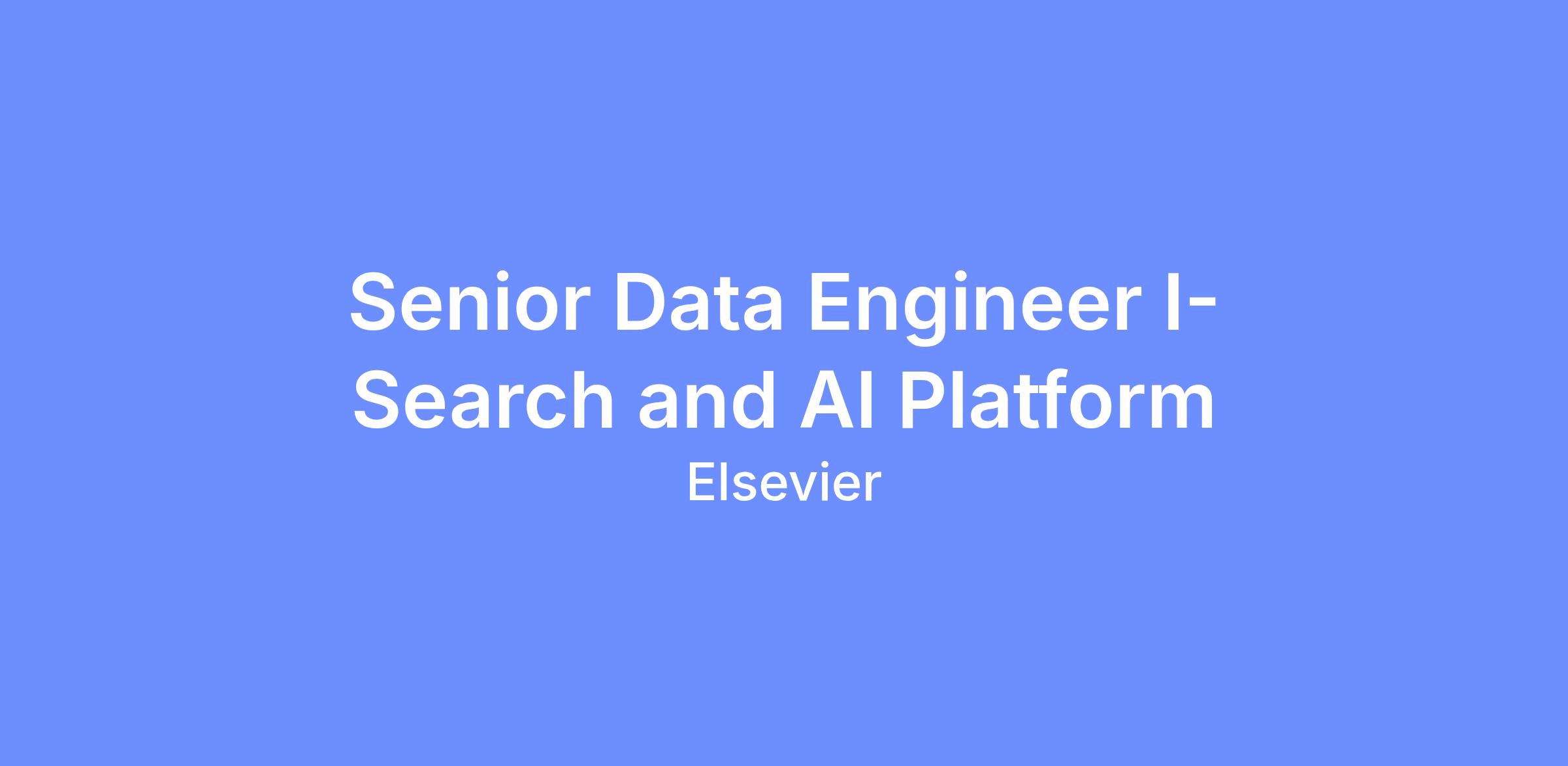 The Search and AI Platform supports core products such as Scopus, ScienceDirect, and AIādriven research solutions. As a Senior Data Engineer, you will help design, build, and run reliable data pipelines and services that support largeāscale search and analytics use cases. You will work handsāon while also supporting and guiding other engineers.